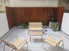 PATIO, detalles en madera, mobiliario, iluminación solar, salida de agua nueva y gas (para futura parrilla gas).