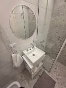 🛁 Baño completo con mampara, inodoro y bidet Ferrum línea Bari, vanitory madera blanca laqueado, griferia Piaza, secador de pelo (tipo hotel) y todo el equipamiento de baño.