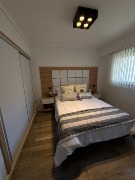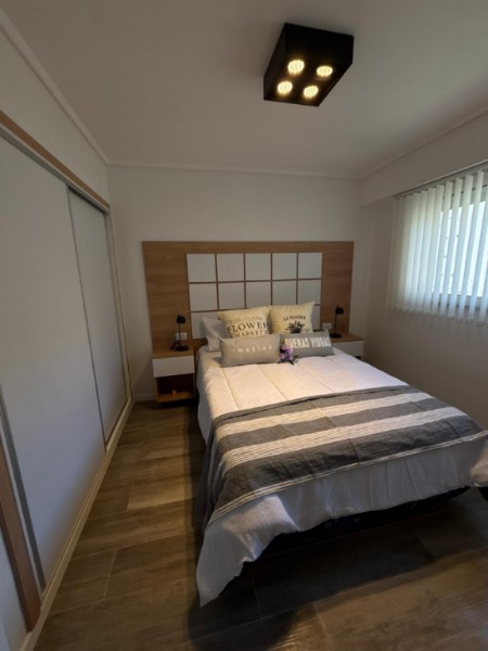 Dormitorio al contrafrente con pisos de parquet plastificados, placard empotrado y juego de dormitorio a estrenar.