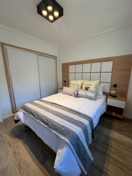 Calefacción por tiro balanceado en living y conexión para calefactor en habitación. Aberturas de madera en cedro. Pisos de porcelanato símil madera.