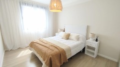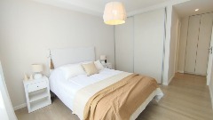 Dormitorio al contrafrente con pisos de parquet plastificados, placard empotrado y juego de dormitorio a estrenar.