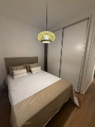 Dormitorio con pisos parquet pulido, lustrado y plastificado, con amplio placard. Con sommier de 2 plazas, respaldo de cama y mesas de luz.