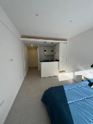 Cocina separada con mesada de cuarzo, bajomesadas a medida, equipada con cocina a gas, heladera con Freezer, termotanque eléctrico y pava eléctrica.