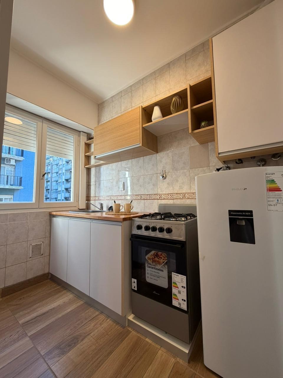 COCINA EQUIPADA CON LAVARROPAS AUTOMATICO, COCINA DE ACERO INOXIDABLE, HELADERA CON FREEZER, MESADA DE CUARZO, PILETA JHONSON