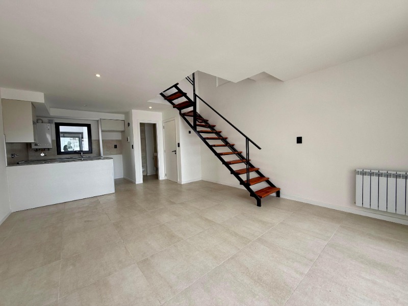 Chalet en dúplex de 4 ambientes. En planta baja: living comedor con ventanal doble hacia afuera. Cocina completa. Toilette de recepción. Amplio garaje con funcionalidad de quincho y espacio para parrilla. A la planta alta se accede por una hermosa escalera en madera. Dormitorio principal con balcón saliente. Y los otros dos dormitorios, uno con balcón saliente también. Baño completo con bañera. Zona residencial, con calle asfaltada y todos los servicios en la zona.
