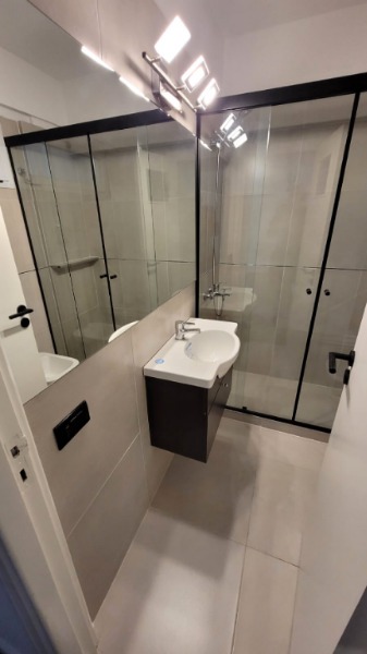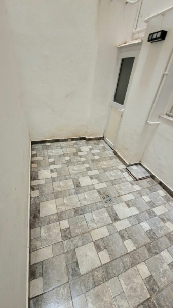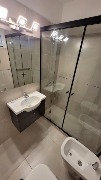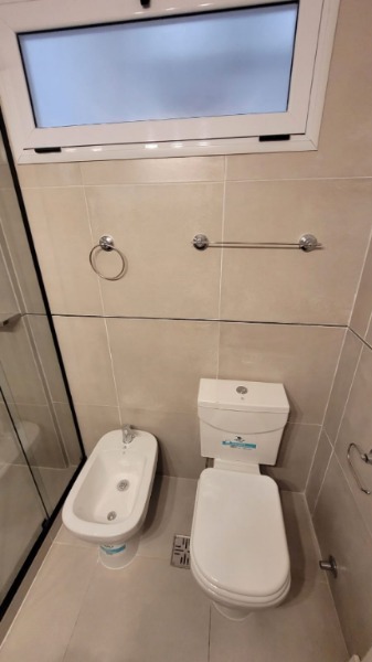 BAÑO REVESTIDO EN PORCELANATO CON PEDILUVIO Y MAMPARA