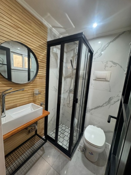 Living comedor a la calle con balcón saliente sobre vereda de sol. Cocina separada externa con ventilación natural. Baño completo. 2 dormitorios con piso parquet plastificado y placares a medida, uno de ellos con baño completo en suite. Placar a medida en hall de distribución. Calefactores tiro balanceado en todos sus ambientes.