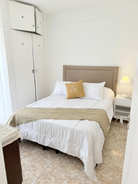 Sommier con respaldo, mesita de luz, modular, TV, placard y salida al balcón saliente