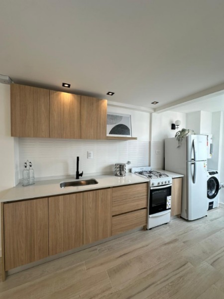 Equipada con Heladera Drean, Lavarropas Drean y Cocina Volcan.