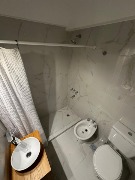 * Baño completo 🚿 (2.00 x 1.50) Revestido en porcelanato.