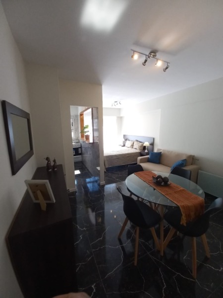 EDIFICIO FRENTE A PLAZA COLON 1 Ambientemuy amplio al Contrafrente conbalcón y Parrilla Aberturas DVH todos los ambientes Amplio Ambiente totalmente amoblado con tv y toma de USB para carga de celular Cocina muy amplia equipada con Lavarropas automático, , Cocina , Heladera con freezer Placard y juego de dormitorio 2 plazas , Ambiente dividido Baño completo principal con Mampara vidrio templado Calefacción