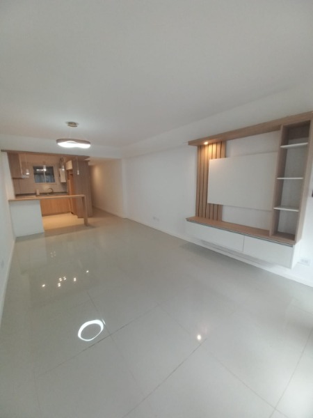 Living comedor externo con pisos de porcelanato. Rack a medida y cortinas a estrenar. Salida al balcon saliente muy luminoso.