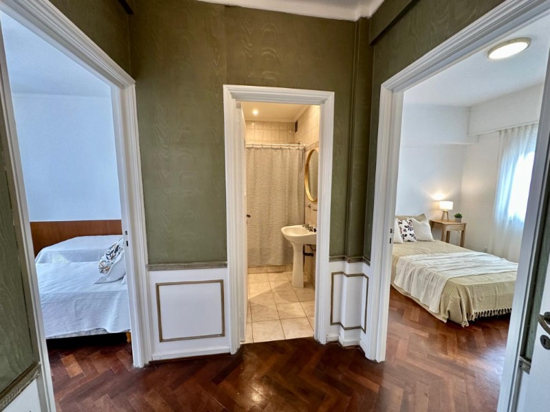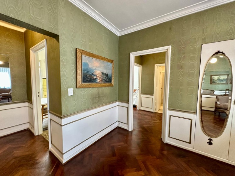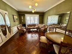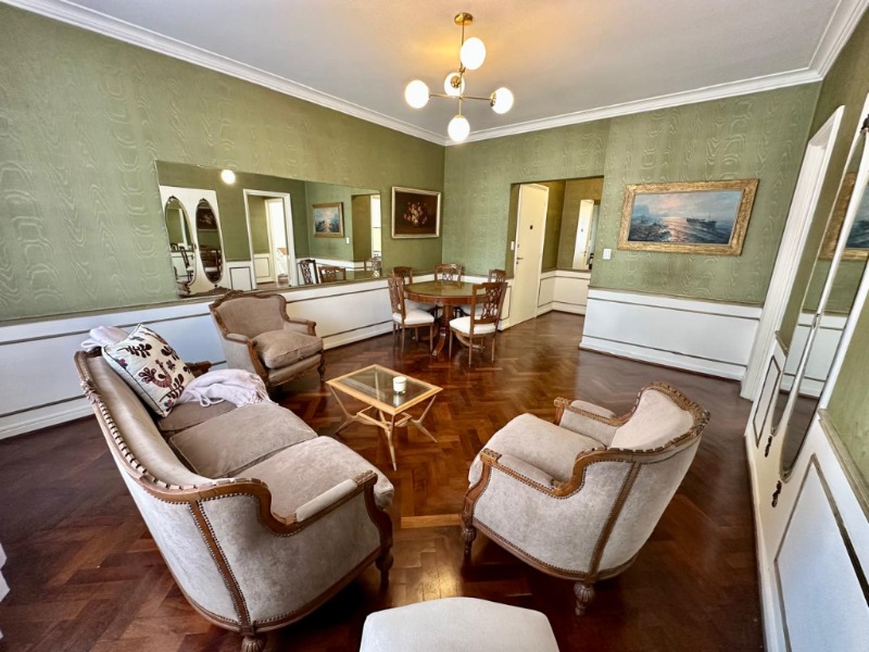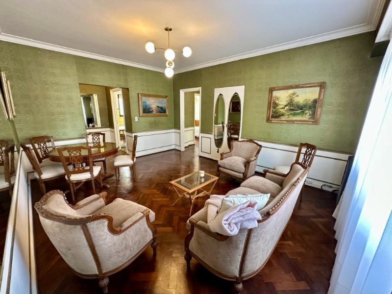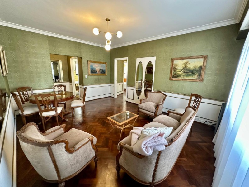 • Hall de recepción.• Living comedor de generosas dimensiones, con gran ventanal al contrafrente. Se destacan sus muebles de estilo francés y empapelado original en excelente estado, que realzan su identidad clásica.